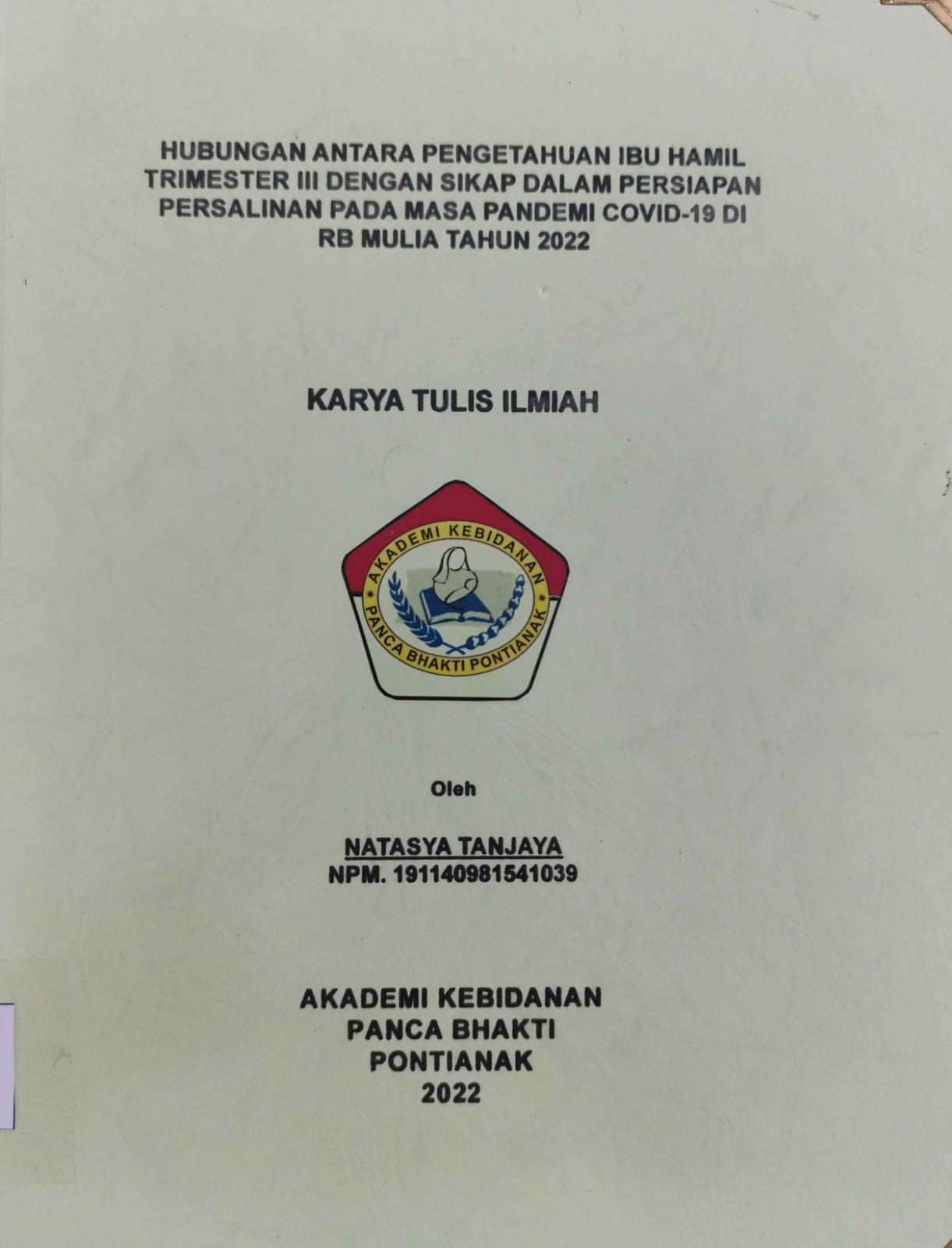 Tujuan penelitian untuk menganalisis hubungan antara pengetahuan ibu hamil trimester III dengan sikap dalam persiapan persalinan di masa pandemi Covid-19 di RB Mulia Tahun 2022.