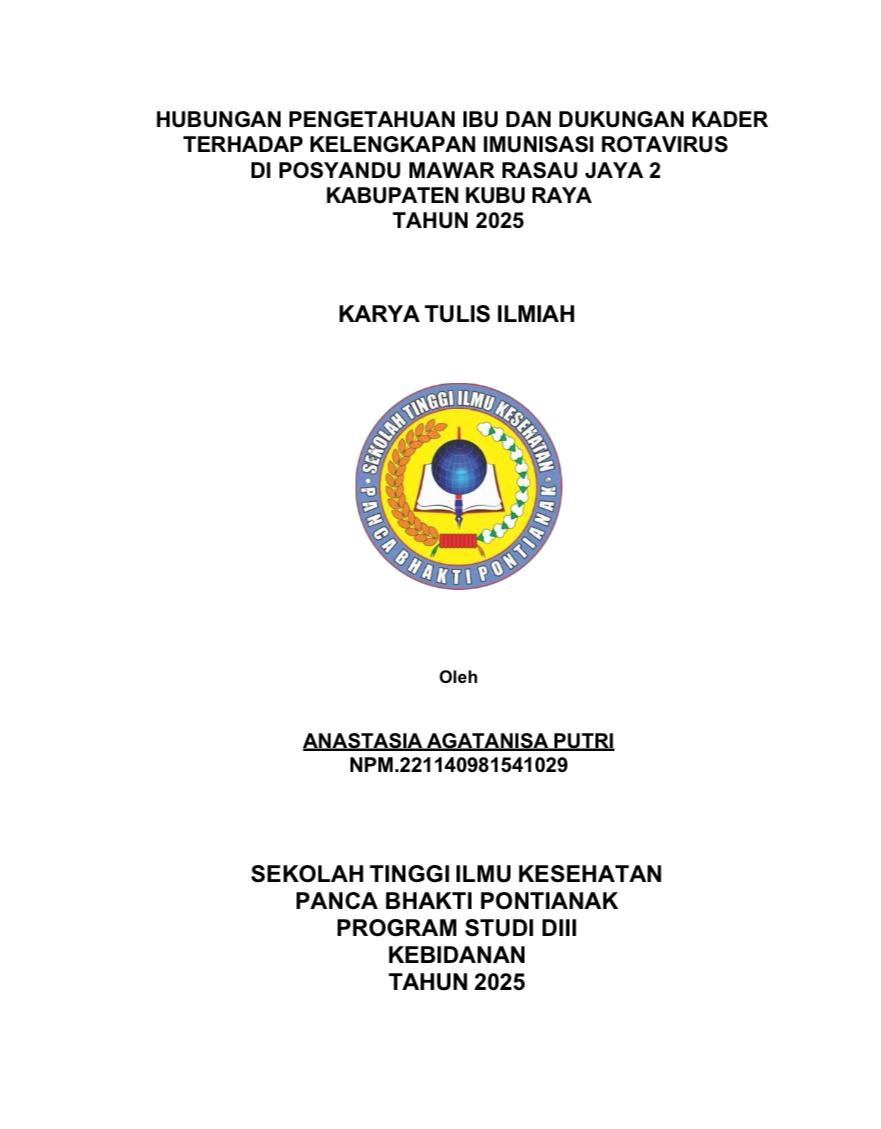Kata Kunci : Imunisasi Rotavirus, Pengetahuan Ibu, Dukungan Kader